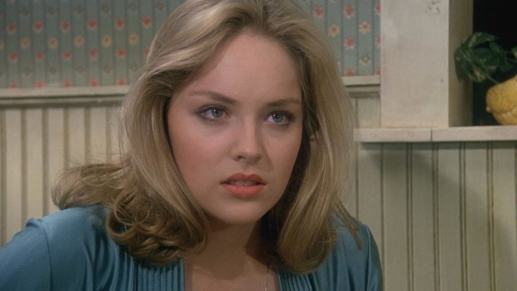 1985, Sharon Stone n’est pour ainsi dire personne. La future star de Basic Instinct ou Casino est alors une actrice comme il y en a des milliers à Hollywood, c’est à dire une débutante qui galère à trouver des petits rôles en espérant être un jour remarquée. Un peu de mannequinat par-ci, 2-3 apparitions par là dans un Woody Allen ou un Wes Craven et quelques mini rôles dans des épisodes de séries télé (Ricky ou la belle vie, Mike Hammer, Remington Steele). Et puis c’est tout pour le moment.