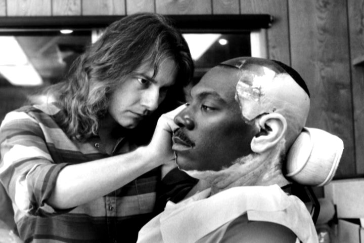 UN PRINCE A NEW YORK de John Landis (1988) : Eddie Murphy au maquillage, prêt à changer de rôle.
