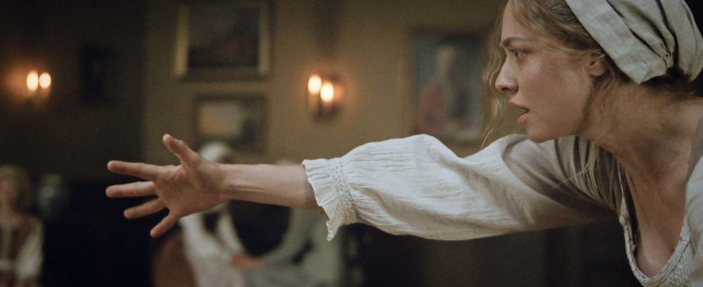 De l’aveu de Mona Fastvold, Le Testament d’Ann Lee est un projet qui revient de loin tant il a été difficile de convaincre des partenaires de produire un film sur un sujet pas franchement très… « sexy ». Pas étonnant. Porté par Amanda Seyfried (dans son plus grand rôle), Le Testament d’Ann Lee est un drame biographique sur la vie d’Ann Lee, surnommée Mother Ann, une jeune anglaise du XVIIIe siècle qui deviendra la fondatrice de la secte religieuse des Shakers. Ce mouvement né à Manchester avant d’émigrer aux États-Unis pour fuir les persécutions subies prônait une dévotion totale à Dieu, adoré dans des transes incantatoires (d’où le nom de Shakers aka Tremblements en français) mais aussi une abstinence absolue et une quête de perfection en tout point. Une quête que la cinéaste semble appliquer à son propre long-métrage, tournant autour de l’essence du chef-d’oeuvre.
