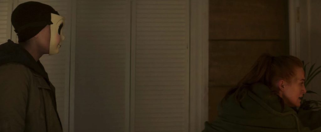 Les Intrus : chapitre 2 reprend peu ou proue là où le précédent s’était arrêté. Maya, la seule survivante du massacre précédent, se réveille à l’hôpital. Mais les tueurs masqués n’en ont pas fini avec elle et les revoilà à ses trousses. S’ensuit un combat acharné dans les murs de l’hôpital puis en forêt puis dans la ville…