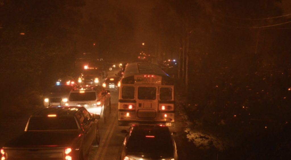 Mais tout bien fichu qu’il est, The Lost Bus embarque essentiellement par son efficacité et son imagerie spectaculaire, ses principales forces. Car derrière elle, il est surtout assez prévisible, linéaire et sans réelles émotions (on dirait bien qu’il y a le stress de la catastrophe sous tension mais le côté programmatique de la chose fait que l’on tremble finalement assez peu pour les personnages). Sympa à regarder sur l’instant mais anecdotique à échelle d’une année de cinema, on en retiendra plus sa mise en scène nerveuse que le reste. Allez, à quand un gros blockbuster hyperréaliste sur l’ouragan Katrina, le mégafeu Woolsey qui a brûlé les baraques de Gerard Butler, Miley Cyrus ou Shannen Doherty, les inondations au Texas ou la récente explosion d’une usine du Tennessee ?