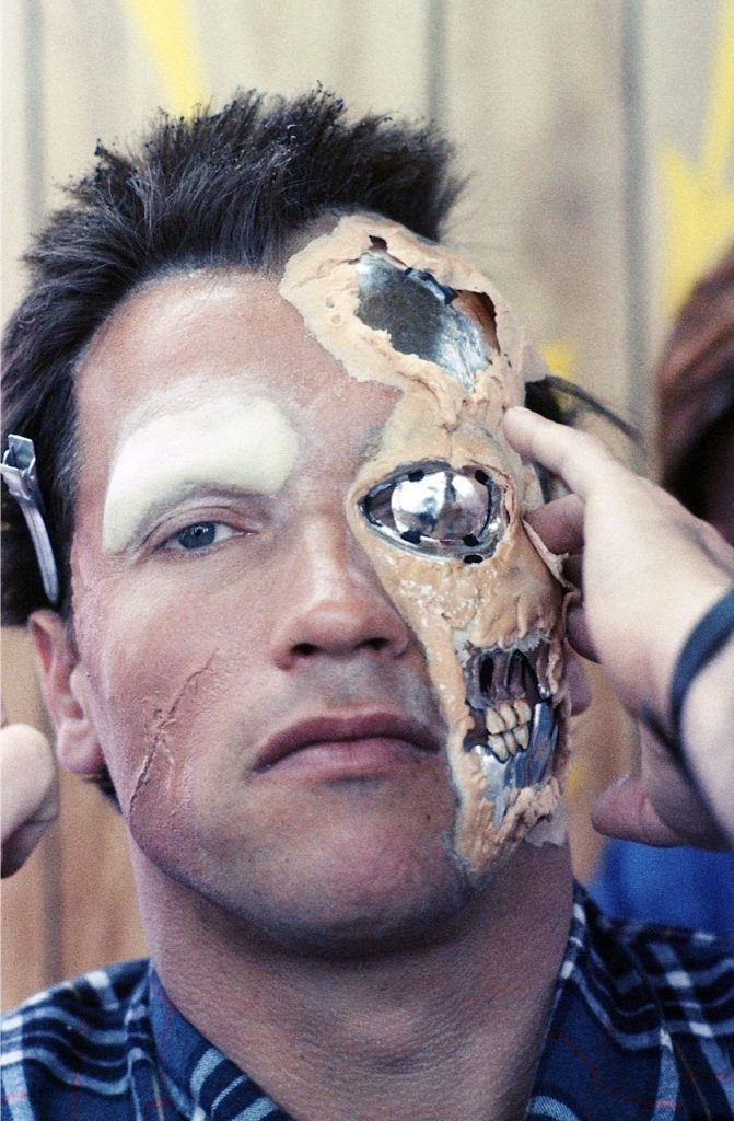 TERMINATOR 2 de James Cameron (1991) : Schwarzy au maquillage.