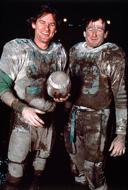THE BEST OF TIMES de Roger Spottiswoode (1986) : Robin Williams et Kurt Russell sur le tournage.