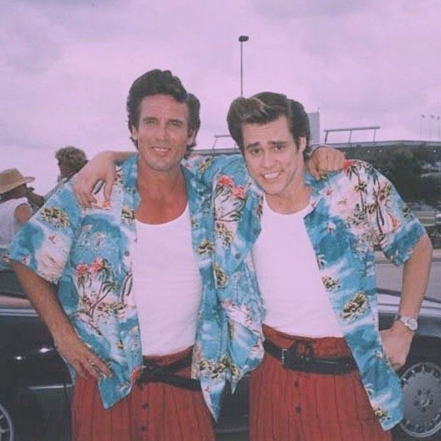 ACE VENTURA de Tom Shadyac (1994) : Jim Carrey et sa doublure.