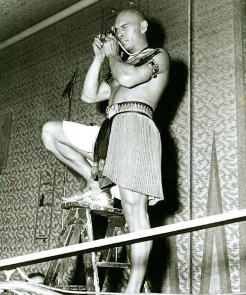LES DIX COMMANDEMENTS de Cecil B. DeMille (1956) : Yul Brynner immortalisant le tournage en costume.