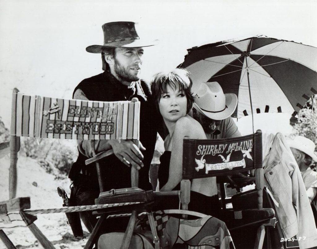 SIERRA TORRIDE de Don Siegel (1970) : Shirley MacLaine et Clint Eastwood sur le tournage.
