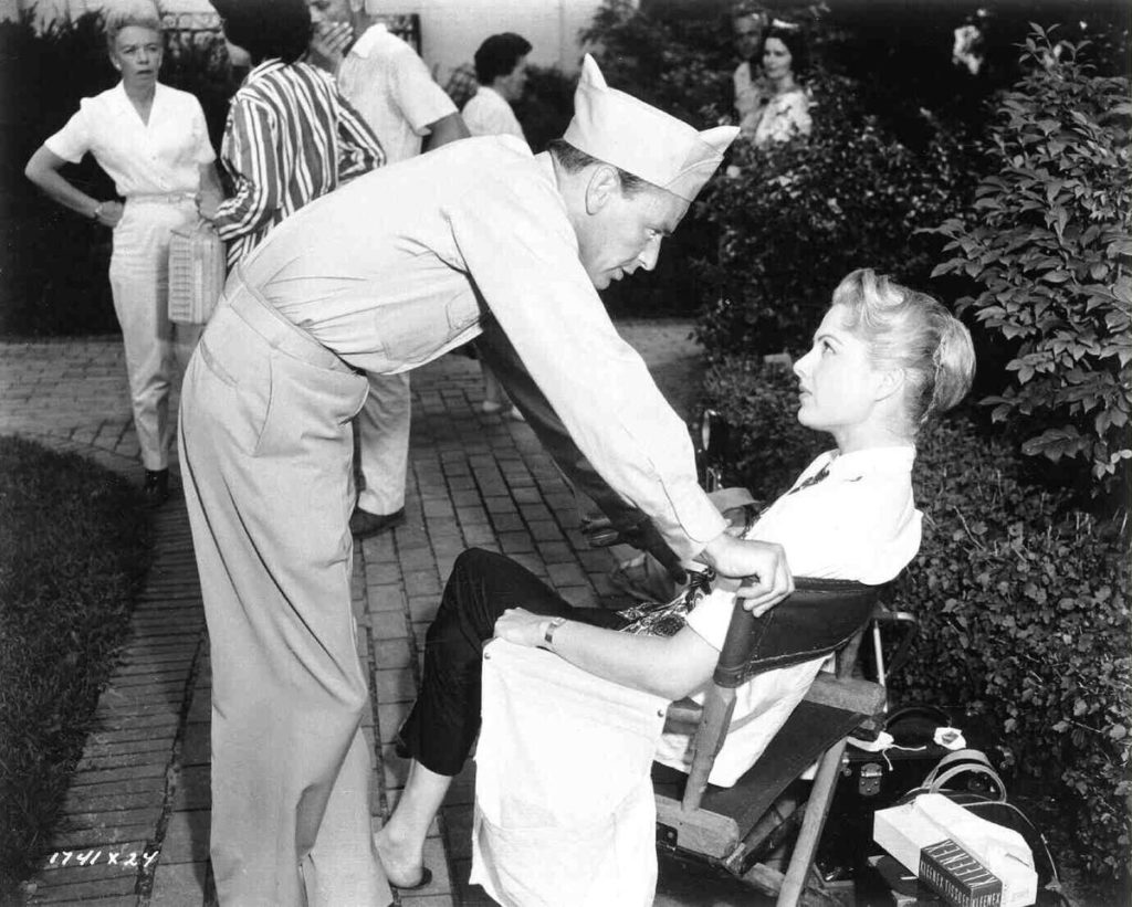 COMME UN TORRENT de Vincente Minnelli (1983) : Martha Hyer et Frank Sinatra sur le tournage.