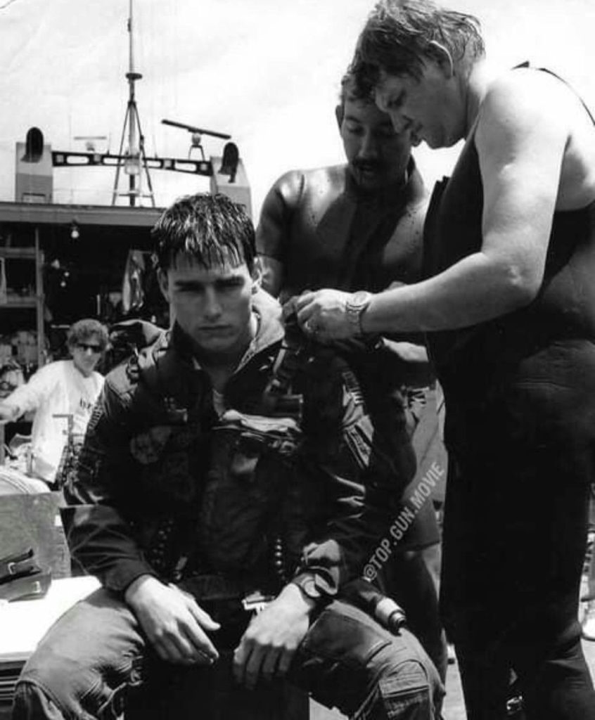 TOP GUN de Tony Scott (1986) : Tom Cruise sur le tournage.